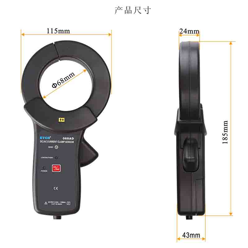 電流量程:AC/DC 0.0mA~100mA/50A /1000A/1500A