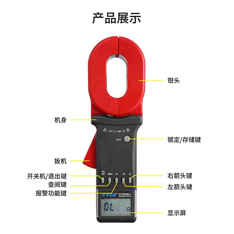 ETCR2000+鉗形接地電阻儀又稱鉗形接地電阻表、單鉗接地電阻測試儀、環(huán)路電阻測試儀、防雷接地電阻表、防雷地阻儀,用于接地電阻、回路電阻測量、接地故障判斷。在測量有回路的接地系統(tǒng)時,不需斷開接地引下線,不需輔助接地極,安全快速、使用簡便。鉗形接地電阻儀廣泛應用于電力、電信、氣象、油田、建筑及工業(yè)電氣設備等的接地電阻測量、回路電阻測量。長鉗口特別適宜于扁鋼接地的場所。