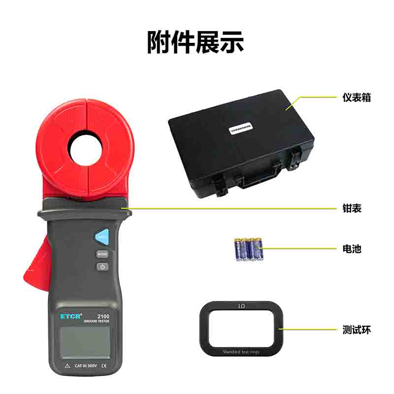 | ETCR2100C鉗形接地電阻儀 | Φ32mm | 0.010Ω~1000Ω | 0.00mA~30A | 有 | 99組 |