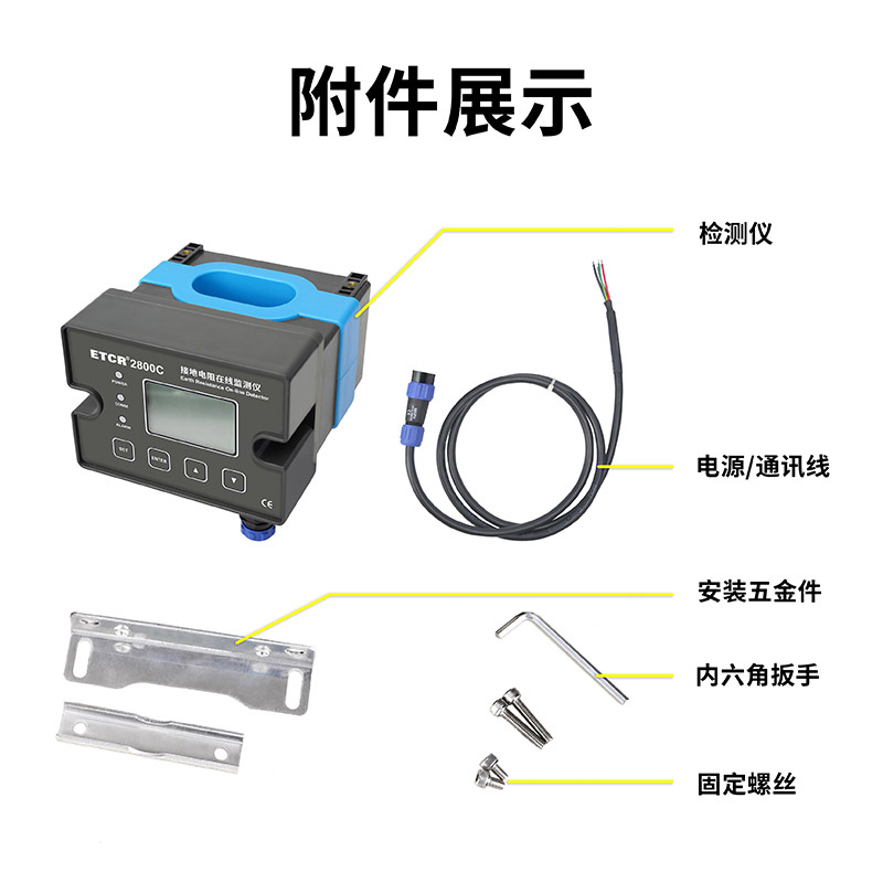 ETCR2800B/2800C接地電阻在線檢測(cè)儀用于在線監(jiān)測(cè)接地電阻、接地引下線的連接狀況、回路接地電阻、金屬回路聯(lián)結(jié)電阻,還可以在線監(jiān)測(cè)接地電流。又稱接地電阻在線測(cè)試儀、回路電阻在線監(jiān)測(cè)儀。檢測(cè)儀采用非接觸測(cè)量技術(shù)、地線穿心通過(guò)傳感器、絕不影響防雷接地效果和設(shè)施的正常運(yùn)行;檢測(cè)儀有多種結(jié)構(gòu)適應(yīng)不同場(chǎng)所使用;檢測(cè)儀防護(hù)等級(jí)IP65,可在戶外安裝使用。檢測(cè)儀廣泛應(yīng)用于輸電線路桿塔接地;氣象防雷接地;石油化工接地;通信接地;變配電站接地;鐵路設(shè)施接地;建筑倉(cāng)庫(kù)接地;金屬回路阻值;電氣設(shè)備接地等。
