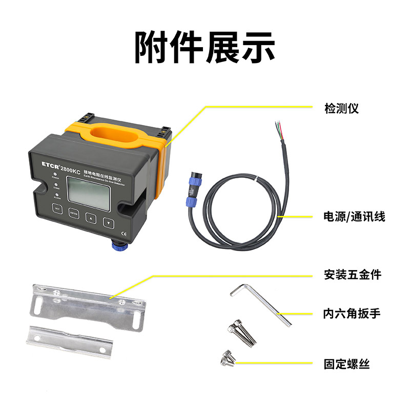 ETCR2800KB/2800KC接地電阻在線檢測(cè)儀用于在線監(jiān)測(cè)接地電阻、接地引下線的連接狀況、回路接地電阻、金屬回路聯(lián)結(jié)電阻,還可以在線監(jiān)測(cè)接地電流。又稱接地電阻在線測(cè)試儀、回路電阻在線監(jiān)測(cè)儀。檢測(cè)儀采用非接觸測(cè)量技術(shù)、地線穿心通過(guò)傳感器、絕不影響防雷接地效果和設(shè)施的正常運(yùn)行;檢測(cè)儀有多種結(jié)構(gòu)適應(yīng)不同場(chǎng)所使用;檢測(cè)儀防護(hù)等級(jí)IP65,可在戶外安裝使用。檢測(cè)儀廣泛應(yīng)用于輸電線路桿塔接地;氣象防雷接地;石油化工接地;通信接地;變配電站接地;鐵路設(shè)施接地;建筑倉(cāng)庫(kù)接地;金屬回路阻值;電氣設(shè)備接地等。