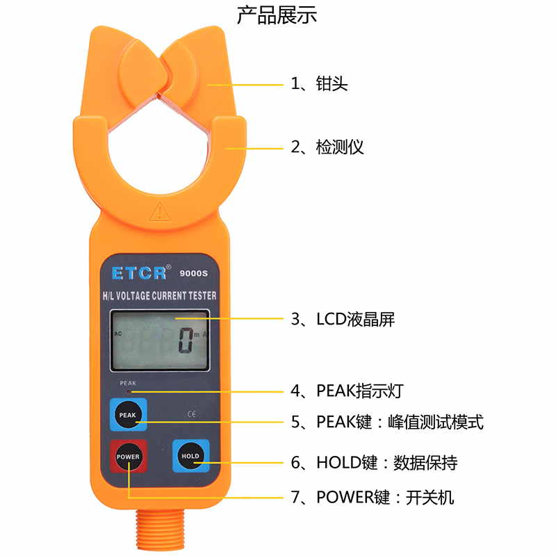 ETCR9000S便攜式高低壓鉗形電流表鉗頭與引導(dǎo)區(qū)創(chuàng)新的一體化設(shè)計(jì),通過按壓或退拔絕緣桿能快速方便鉗夾或撤離被測(cè)導(dǎo)線,安全快捷。儀表還具有峰值保持、數(shù)據(jù)保持、數(shù)據(jù)存儲(chǔ)等功能。