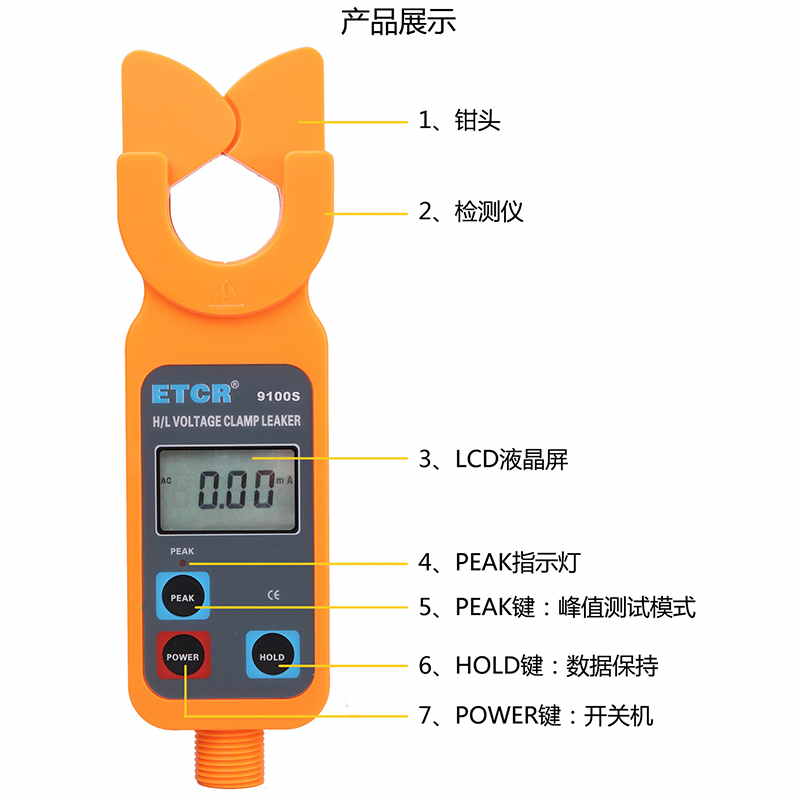 ETCR9100S便攜式高低壓鉗形電流表鉗頭與引導(dǎo)區(qū)創(chuàng)新的一體化設(shè)計(jì),通過(guò)按壓或退拔絕緣桿能快速方便鉗夾或撤離被測(cè)導(dǎo)線,安全快捷。儀表還具有峰值保持、數(shù)據(jù)保持、數(shù)據(jù)存儲(chǔ)等功能。