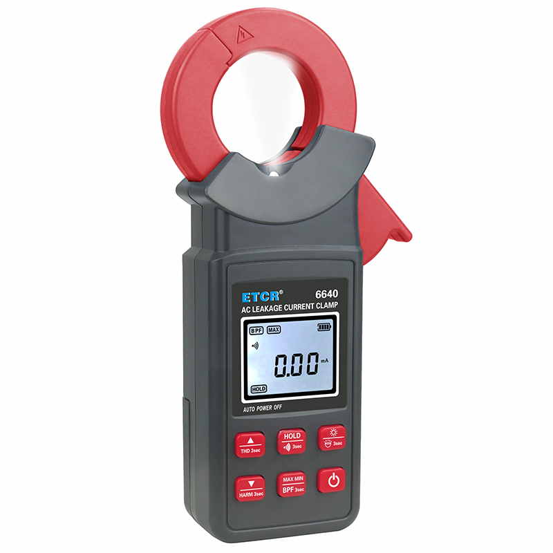 ETCR6640鉗形漏電流表可測(cè)試40Hz~1kHz頻率范圍的電流。鉗表還具有背光、手電筒、數(shù)據(jù)存儲(chǔ)、藍(lán)牙通訊等功能。鉗表使用大容量鋰電池type-c充電口,是一款新型的電工安全檢測(cè)必備工具。
