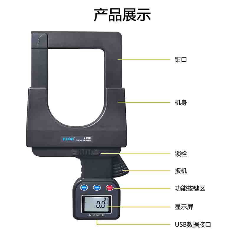 ETCR7100超大口徑鉗形漏電電流表具有峰值保持、數(shù)據(jù)保持、數(shù)據(jù)存儲等功能。具有USB通訊功能,通過USB接口及上位機(jī)軟件可以在PC端在線實時監(jiān)測,動態(tài)顯示最大、最小、平均值,具有報警值設(shè)定及報警指示功能,具有歷史數(shù)據(jù)讀取、保存、分析等功能。