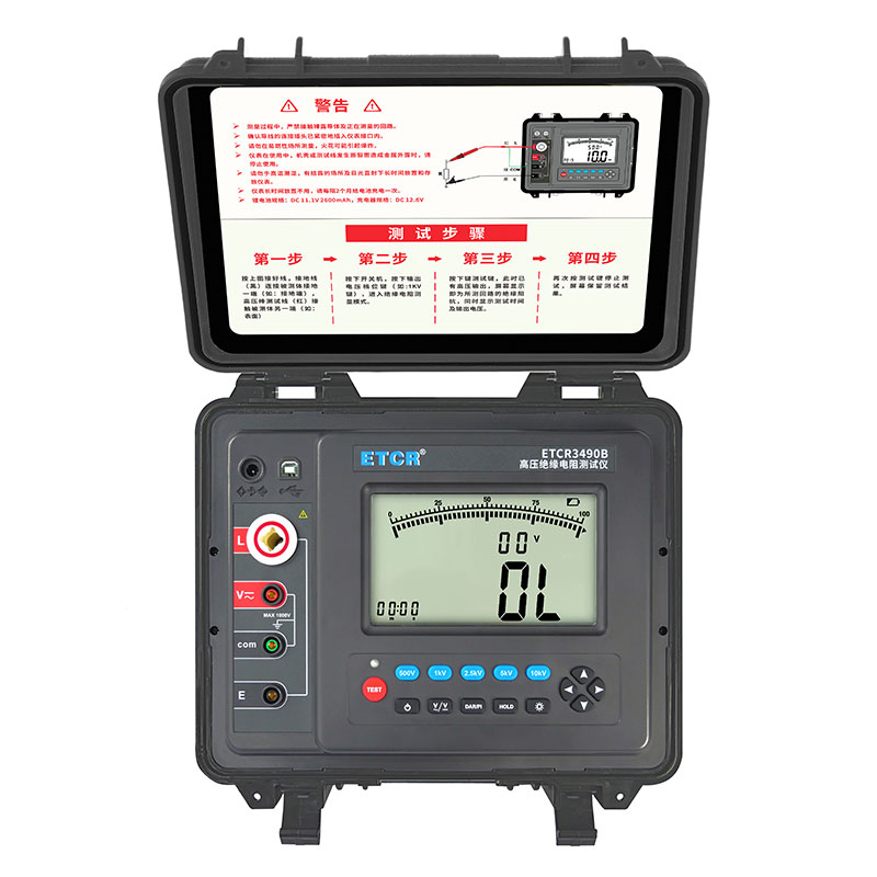 ETCR3490系列高壓絕緣電阻測試儀整機美觀,量程寬,精度高,分辨率高,操作便捷,攜帶方便,準(zhǔn)確可靠、性能穩(wěn)定,抗干擾能力強。而且具有防震、防塵、防潮結(jié)構(gòu),是電信、電力、氣象、機房、油田、機電安裝和維修以及利用電力作為工業(yè)動力或能源的工業(yè)企業(yè)部門常用而必不可少的儀表。適用于測量各種絕緣材料的電阻值及變壓器、電機及電器設(shè)備等的絕緣電阻。
