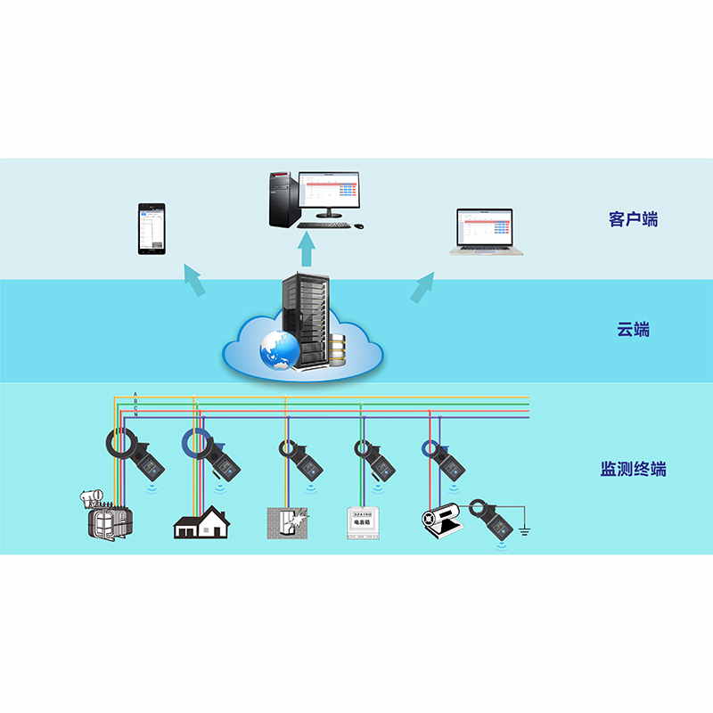 ETCR8000物聯(lián)網(wǎng)鉗形電流監(jiān)測(cè)系統(tǒng)由監(jiān)測(cè)終端、云端、客戶端組成。