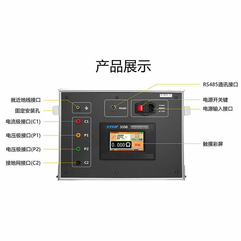 在線監(jiān)測大型接地裝置接地電阻,接地導(dǎo)通,土壤電阻率,跨步電壓,接觸電壓,地表電位梯度等。