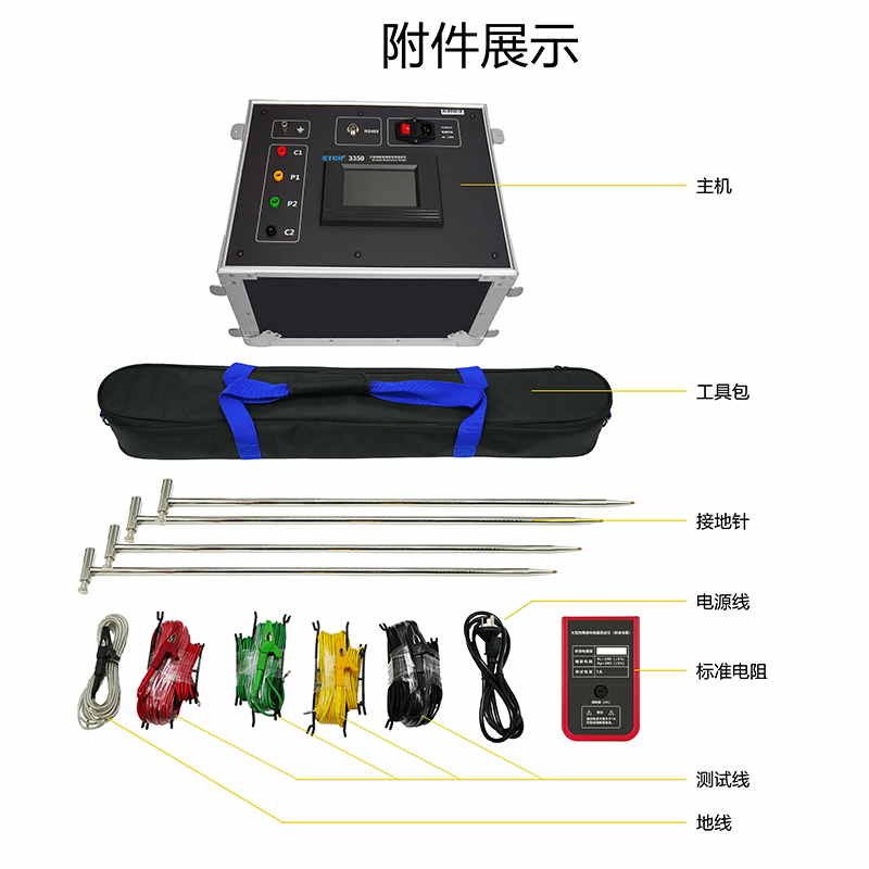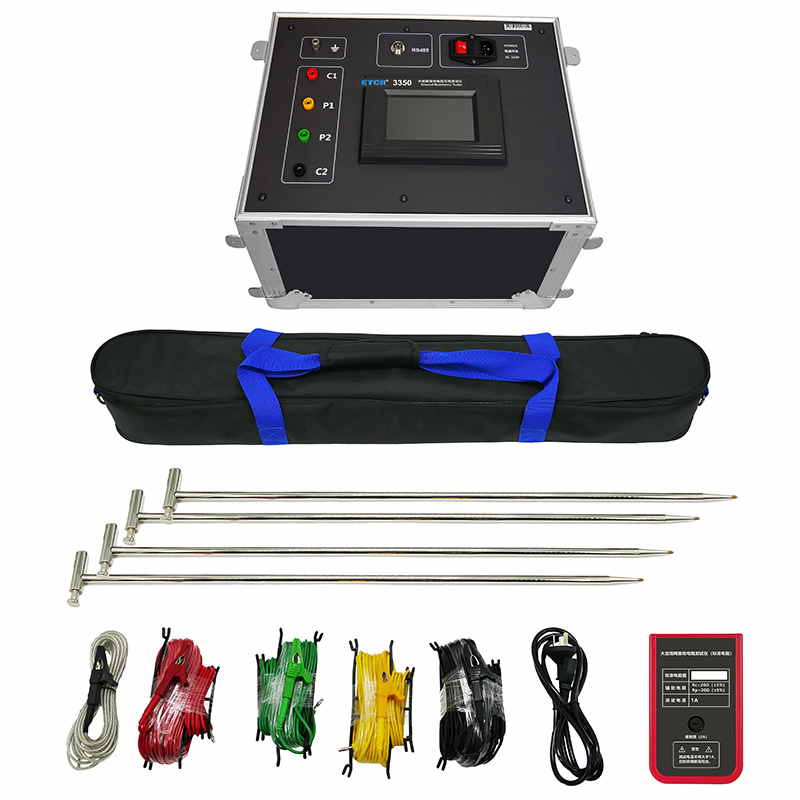 ETCR3350大型地網(wǎng)接地電阻在線監(jiān)測儀根據(jù)《JJG984-2004接地導(dǎo)通檢定規(guī)程電阻測試儀》,《DL/T475-2006接地裝置特性參數(shù)測量導(dǎo)則》,《DL/T845.2-2004電阻測量裝置通用技術(shù)條件第二部分:工頻接地電阻測試儀》生產(chǎn)制造。具有獨(dú)特的接地樁及連接線診斷功能和自檢功能,確保測試結(jié)果的準(zhǔn)確。儀器采用超強(qiáng)的自動(dòng)變頻抗干擾技術(shù),配合400V/5A大功率輸出,能在強(qiáng)干擾環(huán)境下準(zhǔn)確測得工頻50Hz下的數(shù)據(jù)。