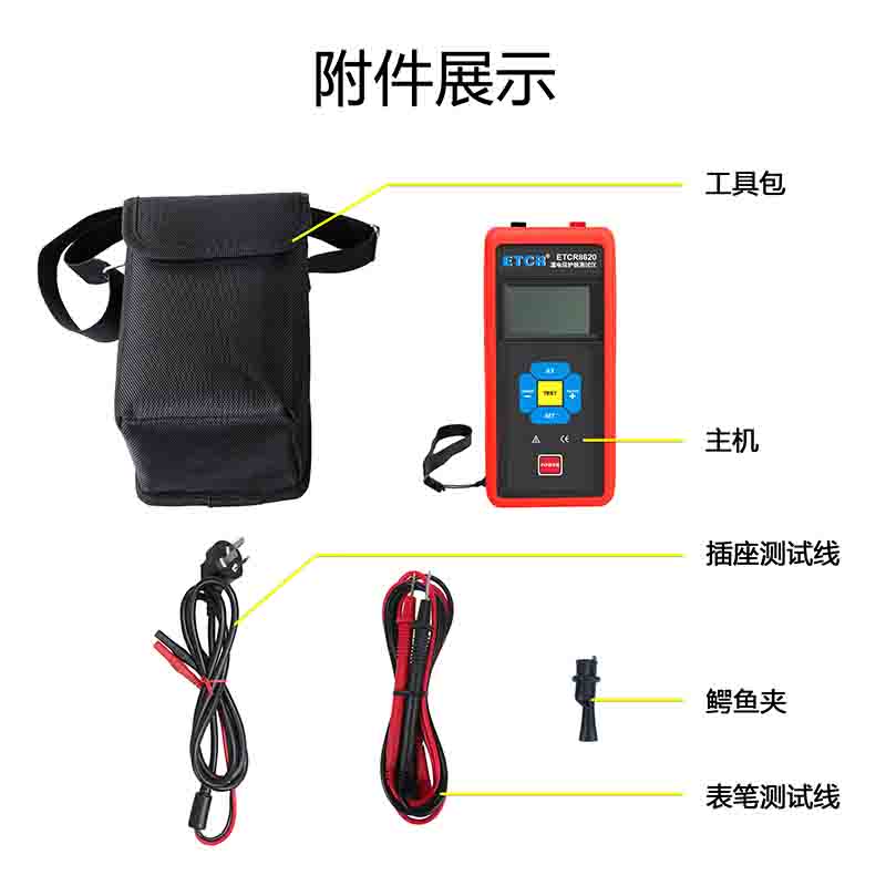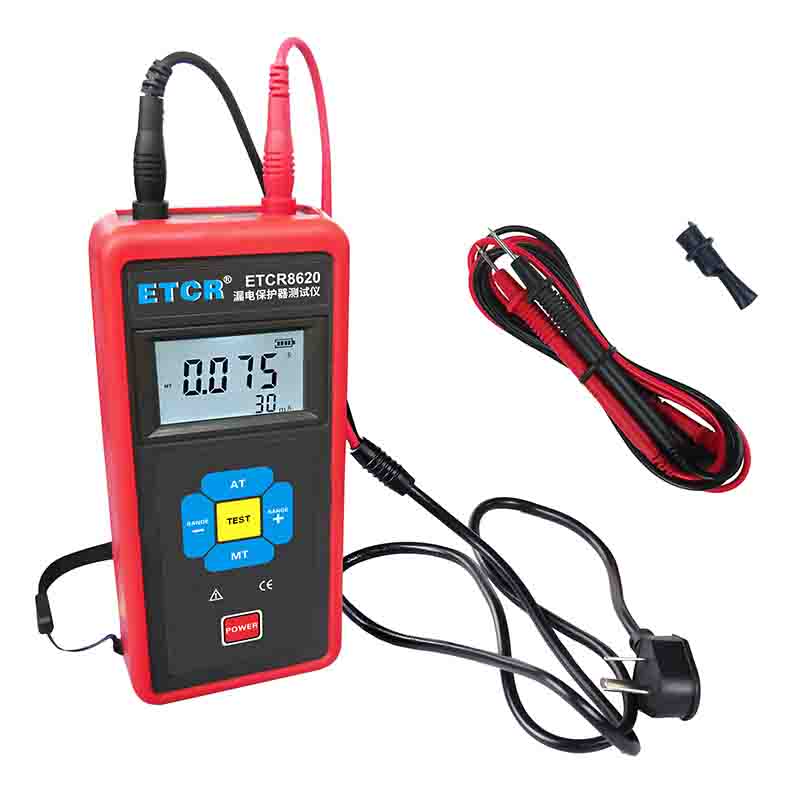 ETCR8600A漏電保護器測試儀3mA~500mA,十八檔0ms~999msAC 0~600V大LCD屏干電池
