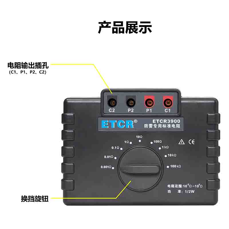 ETCR3900防雷專(zhuān)用標(biāo)準(zhǔn)電阻由9個(gè)1/2W高精度線(xiàn)繞電阻組成,校準(zhǔn)電阻時(shí)直接換擋測(cè)試,無(wú)需更換測(cè)試線(xiàn),性能穩(wěn)定結(jié)構(gòu)堅(jiān)固,校準(zhǔn)測(cè)試特別方便。采用的高精度線(xiàn)繞電阻最高精度達(dá)0.05%,其阻值包括1mΩ、10mΩ、100mΩ、1Ω、10Ω、100Ω、1kΩ、100kΩ完全滿(mǎn)足國(guó)家氣象局38號(hào)令【雷電防護(hù)裝置檢測(cè)資質(zhì)管理辦法】中規(guī)定的10-3~105Ω范圍。本標(biāo)準(zhǔn)電阻主要用于接地電阻測(cè)試儀、等電位測(cè)試儀等儀器的校準(zhǔn)。廣泛應(yīng)用于建筑質(zhì)檢站、監(jiān)理公司、建筑施工單位、防雷公司、電力部門(mén)等。