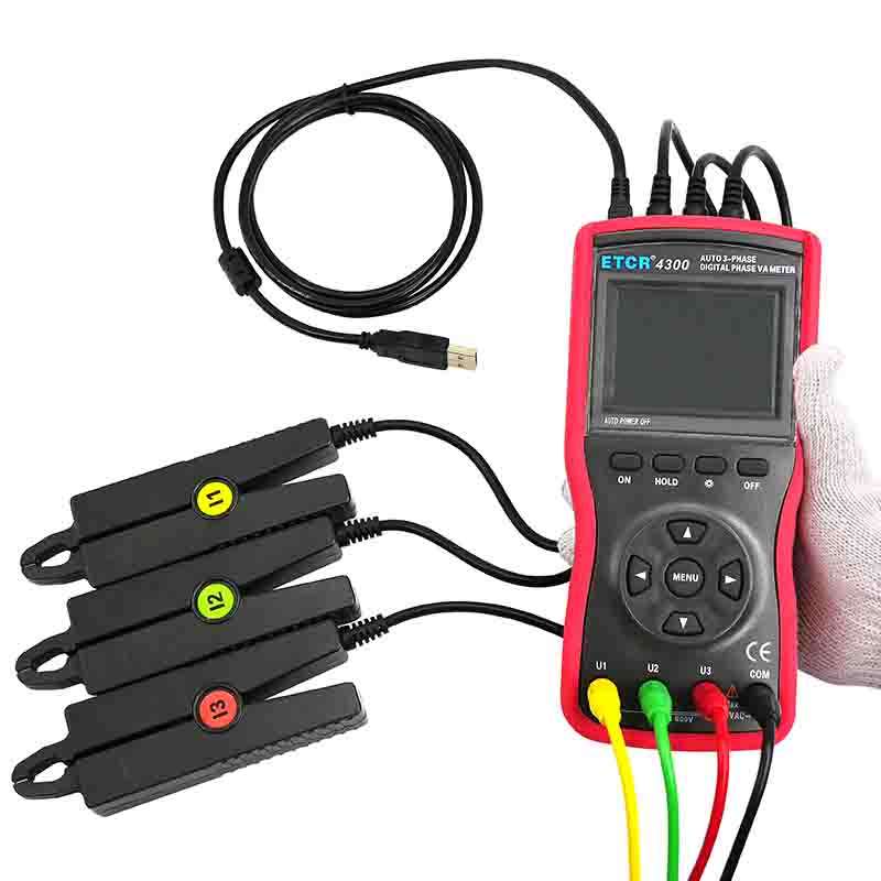 ETCR4300三相數(shù)字相位伏安表采用2.8寸TFT彩色液晶屏,動態(tài)顯示,向量圖指示,一目了然。其尖小形電流鉗鉗口適用于排線密集的場所。儀表的智能化設(shè)計減少了操作的繁瑣性,降低了誤操作的可能性,測試精度高、使用方便。儀表配有的防振防滑高絕緣護(hù)套,USB通訊接口,可存儲1200組數(shù)據(jù),通過系統(tǒng)軟件上傳所存數(shù)據(jù)到電腦,實現(xiàn)在線實時監(jiān)測與歷史查詢,讀取、保存、報表、打印歷史數(shù)據(jù)等。