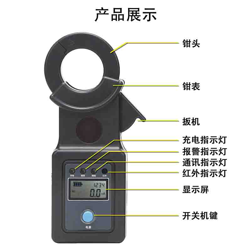 2、監(jiān)測儀采用鉗形結(jié)構(gòu)無需斷開被測線路,測試安全快捷。采用雙層磁屏蔽及數(shù)字集成技術(shù),抗干擾強,精度高。