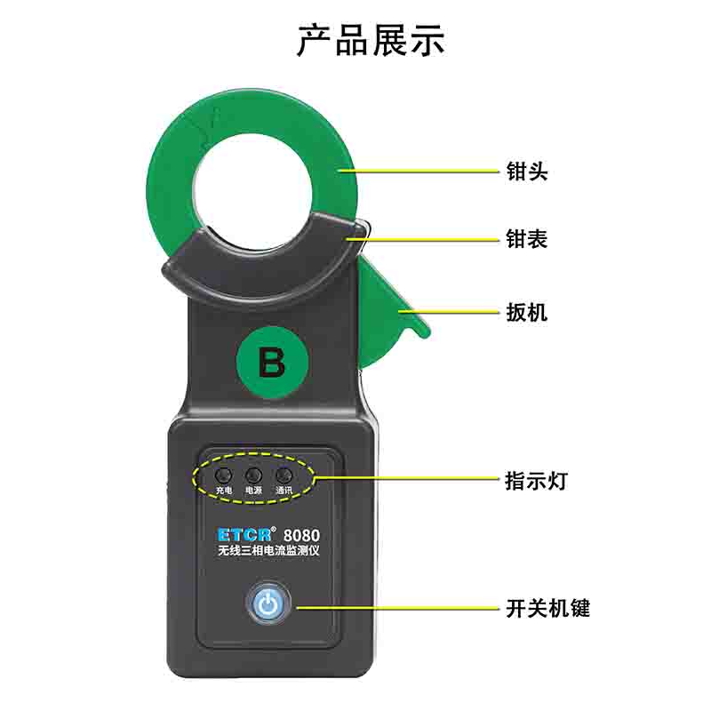 5.監(jiān)測儀采用鉗形結(jié)構(gòu)無需斷開被測線路,測試安全快捷。