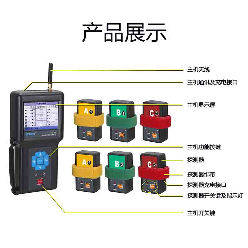 非接觸式核相應用于電力配電系統(tǒng)10kV-35kV手車式中置柜相位判斷、相序測試。