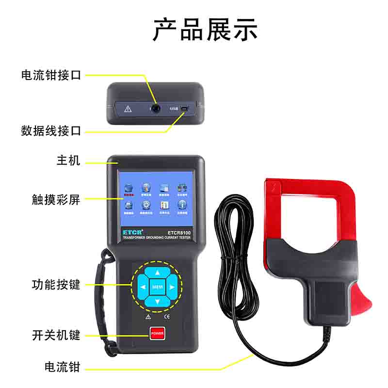 | ETCR8100B變壓器鐵芯接地電流測試儀 | AC 0.00mA~100A | 10Hz~1000Hz | 80mm×80mm | 可設(shè)置報警閾值 | 100組 |